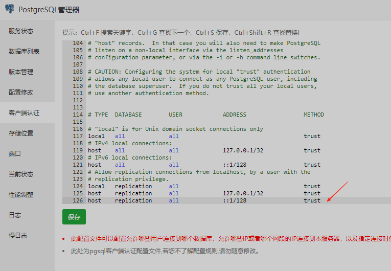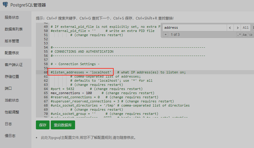 然后重启PGSQL服务之后